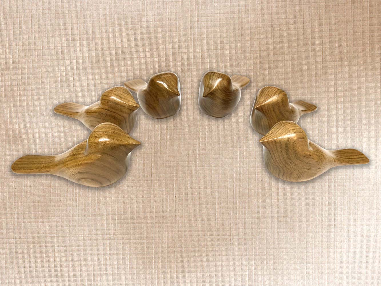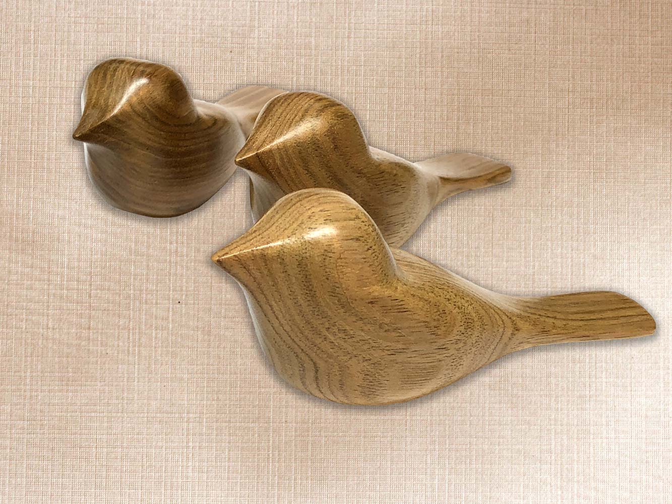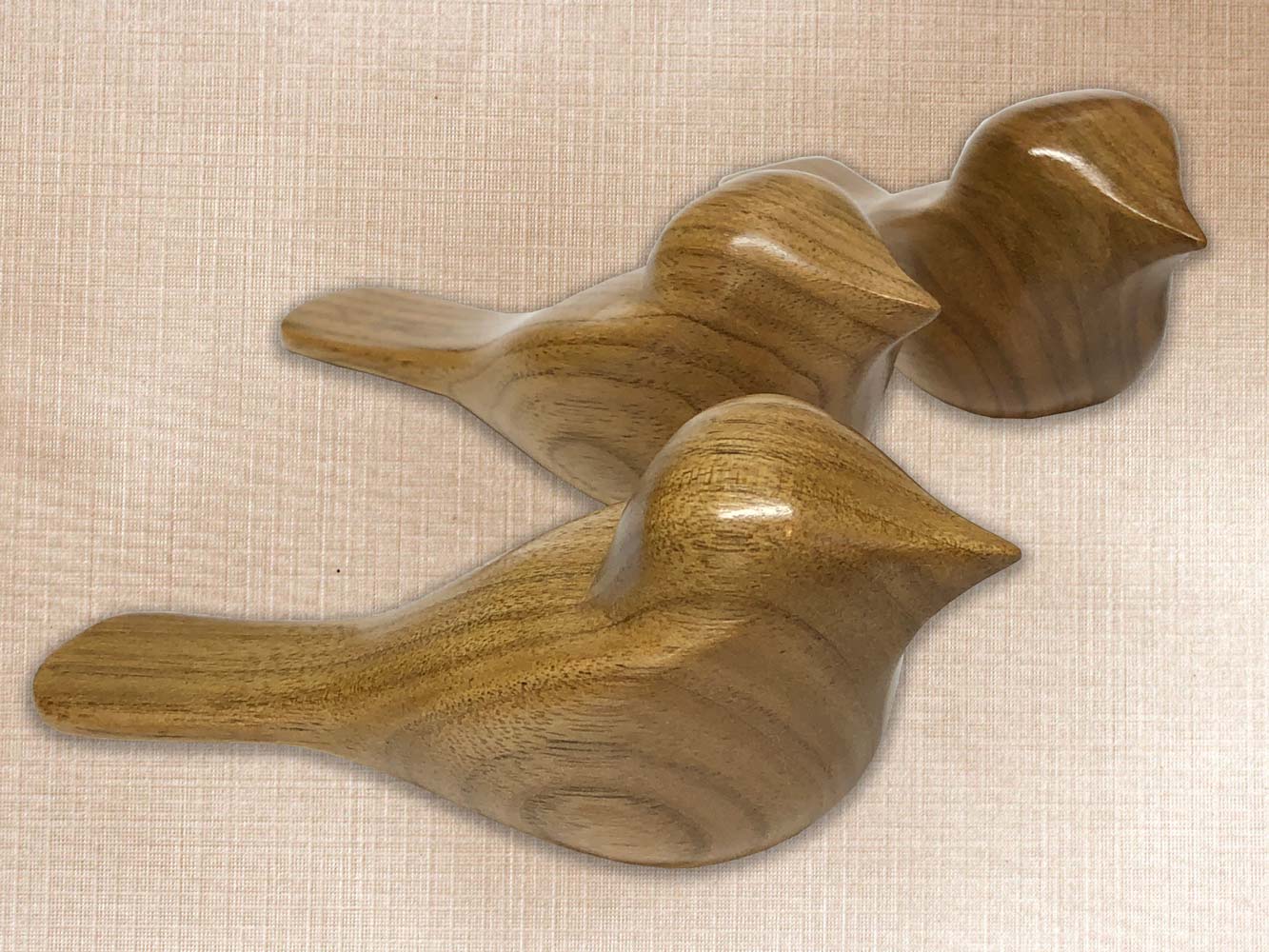 These birds are carved from butternut. Oil and wax finish.
